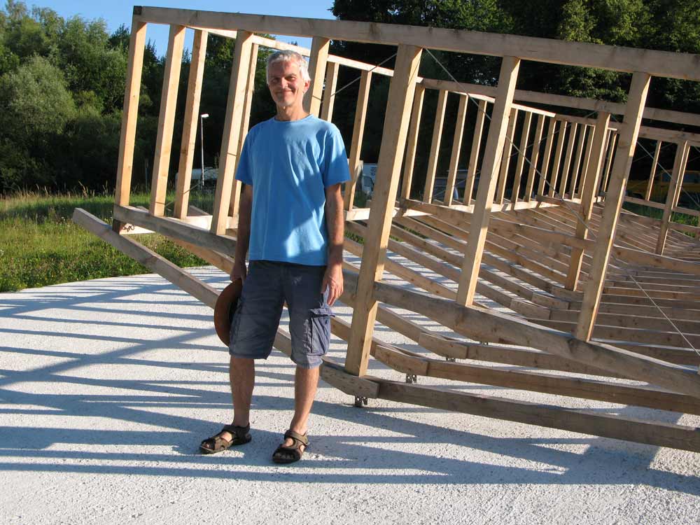 ![]() Stefan Moritz Becker, geboren 1958 in München, 2013 verstorben, studierte Malerei an der Staatlichen Akademie in Stuttgart. Ab 1986 lebte und arbeitete er mehrere Jahre in New York, später errichtete er sein Atelier in München. Er hatte Ausstellungen im In- und Ausland. Seine fotografischen und malerischen Arbeiten wurden mit zahlreichen Publikationen gewürdigt. Er war auch an zwei KUNST-IM-BAU Projekten aktiv beteiligt und ein guter Freund von einigen der ausstellenden Künstler. Die Ausstellungsmacher verneigen sich vor seiner tiefen und aufrichtigen Menschlichkeit, seinem sprühenden Geist und seiner hingebungsvollen, kreativen Arbeitsweise. ![]() Das »Dritte Reich« mit seinen »Geschichts- und Nachbildern« ist Thema von Stefan Moritz Beckers »Der Schatten der Baracke« Im Zentrum seines neuen Buches Der Schatten der Barackestellt Stefan Moritz Becker eine seiner letzten Arbeiten vor: eine 12 Meter lange Skulptur im Bürgerpark Oberföhring (Gelände ei- nes ehemaligen Luftwaffenlazaretts am Rande Münchens), die als Ausgangs- und Endpunkt für seine Reflektionen über die Ästhetik des Faschismus dient. Um diesen »Nachbau« einer Baracke, der neben seiner physischen Materialität, das Immaterielle des Sonnenlichts als Gegenstand hat, ordnet er fragmentarische, seiner persönlichen Assoziationskette entsprechende Spuren der NS-Zeit: Postkarten des Reichsarbeitsdienstes, Original Verbandszeug, Bilder von Baracken des ehe- maligen Luftwaffenlazaretts München-Oberföhring, Schilder auf einem ehemaligen Bahnbetriebsgelände, welches von Zwangs- arbeitern betrieben wurde, aber auch Auszüge aus einem Interview mit Joseph Beuys ... Seine Recherche führte ihn zu alten Bunkeranlagen, der KZ- Gedenkstätte in Dachau, bis zu eben dieser universell einsetz- baren Reichsarbeitsdienst-Baracke (RAD), die Becker für eine der wichtigsten Gebäude der damaligen Zeit hielt. Er stellt sich die Frage, zu welchen Zwecken diese eingesetzt wurde, welche Bedeutung sie für das Funktionieren des politischen Systems des »Dritten Reichs« hatte und wie sie heutzutage, oft in Unkenntnis der historischen Dimension, benutzt und betrieben wird. "....Vielleicht kann ich mir noch vorstellen, das ein paar Tage oder gar Wochen auszuhalten, aber oft jahrelang unter solchen Umständen zu überleben, das kann ich mir nicht vorstellen. Das Maß über solche Dinge nachzudenken, ist tiefe Trauer." (Stefan Moritz Becker) Für Becker ist ein zentrales Thema seiner Arbeit das Licht. Bei seinem 1995 am gleichen Ort verwirklichten Projekt Licht im Lazarett zeichnet er durch Wand und Bodenzeichnungen die Schatten nach, wie sie sich durch den sich verändernden Lichteinfall durch den Raum bewegten. Mit den Worten von Beatrice von Bismarck: »Es entstand ein Gitterwerk aus Linien, das das architektonische Gehäuse in einen Zeit-Raum verwandelte - in ein Kontinuum, in dem vorherige und spätere Zustände der Schattenzeichnung gleichzeitig präsent waren.« Und: »Dort wo der Schatten ist, kommt es ans Licht.« So wie die Skulptur Der Schatten der Baracke auch dieses zentrale Thema seiner Arbeit widerspiegelt, so knüpft die Spurensuche an eine Vielzahl von Arbeiten Beckers an. |
