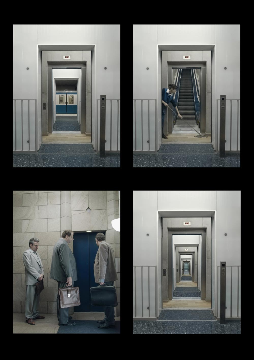 ![]() Anuk Miladinović „access“ - videoinstallation „Wie ein Vorhang öffnen sich die Fahrstuhltüren. Hinter ihnen offenbart sich weder ein opulentes Schauspiel noch eine große Erzählung. Hinter ihnen liegen vielmehr andere geöffnete Fahrstühle. Wenn sich die Türen zum wiederholten Mal aufschieben, eröffnen sie den Blick auf einen geschwungenen Treppenaufgang, eine Rolltreppe oder eine alltägliche Fahrstuhlszenerie: Das Innere einer räumlich streng strukturierten, rhythmisierten und ästhetisierten Welt. Ein Außen aber – und damit ein möglicher Ausweg – kommt in Anuk Miladinovićs Videoarbeit „access“ (2012) nicht in Sicht. Räume sind ein Konstrukt, eine Komposition, eine Setzung. Das wird in den Videoarbeiten und Installationen der Künstlerin deutlich. Dabei erscheinen die komponierten Räume besonders in den neueren Videoarbeiten als irritierende Welten. Wie in ein Unterbewusstsein kann man in sie hinabsteigen. Dort zeigen sich aber keine emotionalen Tiefen in epischer Form, vielmehr offenbart sich eine vollkommene Entleerung, die dafür umso tiefer wirkt. Der Betrachter bleibt zurückgeworfen auf sich selbst. Manch einer füllt diese Leere mit Lachen, ein anderer mit Unbehagen. Fern jeder eindeutigen Moral oder Symbolik führen Anuk Miladinovićs Videos eine emotionslose Welt vor, die Raum für Emotionen lässt – aber sie bleiben unbestimmt, auf der Kippe und ein wenig im Halse stecken. Die Figuren fügen sich in die Umgebung. Sie wirken wie Statisten der Architektur, leere Hüllen in grauen Anzügen, die sich hochästhetisiert mit der Umgebung homogenisieren. Meist wartend, erscheinen sie gefangen in banalen, alltäglichen Handlungen. Man könnte Anuk Miladinovićs Videoarbeiten „Nicht-Erzählungen“ nennen. So wie die von ihr komponierte Architektur kein Außen kennt, so haben diese „Nicht-Erzählungen“ keinen Anfang und kein Ende. „Nicht-Erzählung“ kann jedoch nur stattfinden, wenn die Möglichkeit einer Erzählung aufscheint. Andeutungen finden sich so auch in kurzen, irritierenden, menschlichen Regungen der Figuren, wie beispielsweise einer steifen Umarmung, die sich jedoch jedem Zusammenhang, jedem Vorher und Nachher und damit einer Erzählbarkeit entziehen.“ Greta Hoheisel Besetzung - Jörg Besser, Ossy Boz, Thomas Glatz, Ruth Herzing, Felix Hörhager, Karsten Kaie, Milan Mihajlović, Torsten Mühlbach, Aurélien Reichert, Leif Riecker, Ullrich Wittemann Regie, Schnitt - Anuk Miladinović Regieassistenz - Dana Lürken Kamera, Postproduktion - Jakob Wiessner Kameraassistenz - Thomas Schiller Licht - Benedikt Haas, Jonas Dorscheid Ton, Sounddesign, Mischung - Joachim von Breitenstein Kostüm - Ruth Herzing Maske - Nikola Johannsen |